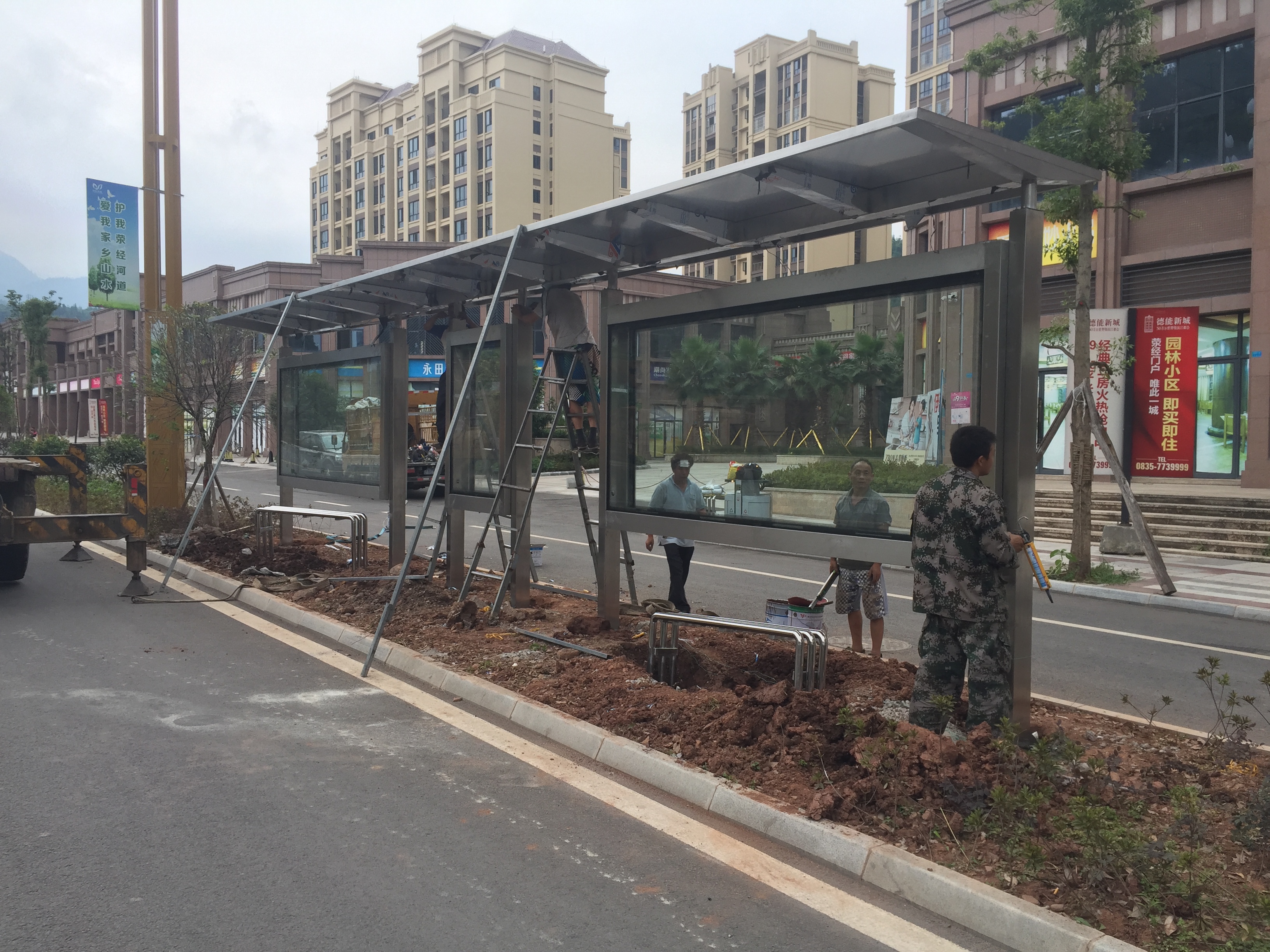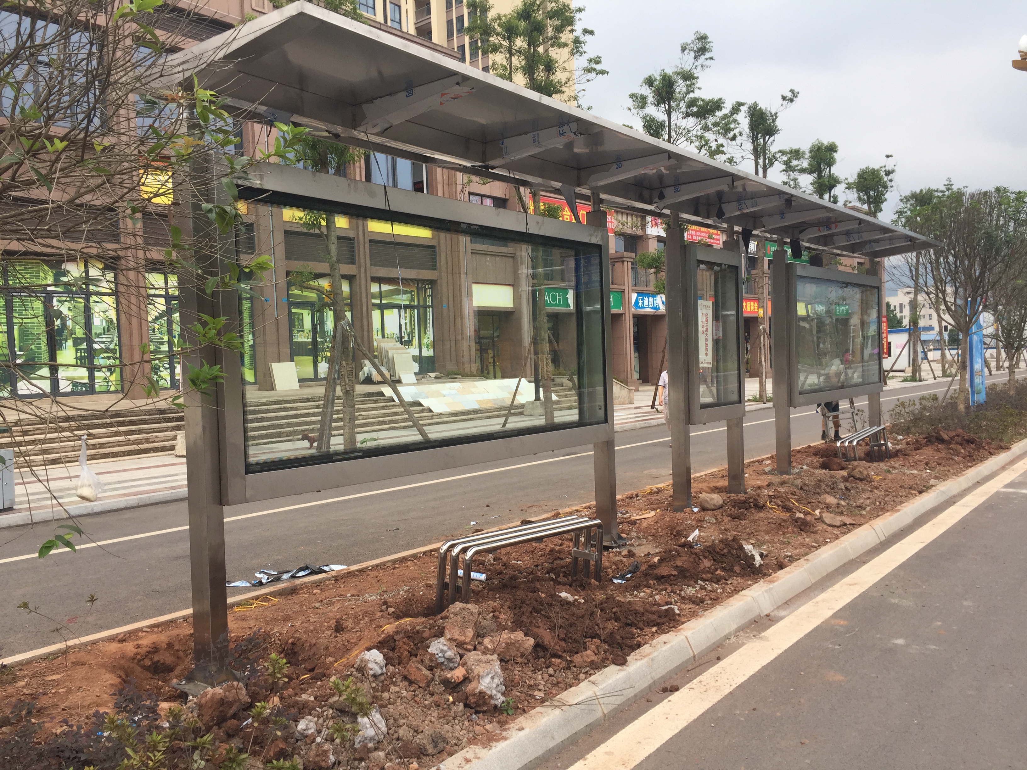 我公司中標(biāo)承建的雅安市滎經(jīng)縣76座公交站臺改造項目已經(jīng)全部完工,通過驗收交付使用。該站臺全部采用不銹鋼材質(zhì),頂棚以當(dāng)?shù)赜忻?ldquo;鴿子花”為logo, 為旅游興縣營造良好的環(huán)